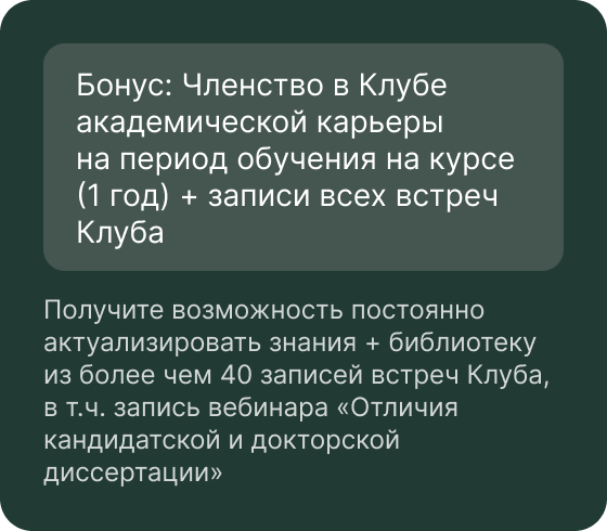 Благодаря курсу, я получила понятные структурированные ответы на свои вопросы: как собирать информацию, какие методы исследований бывают и как их использовать, где и какие публикации делать, сама диссертация — план и т. д.